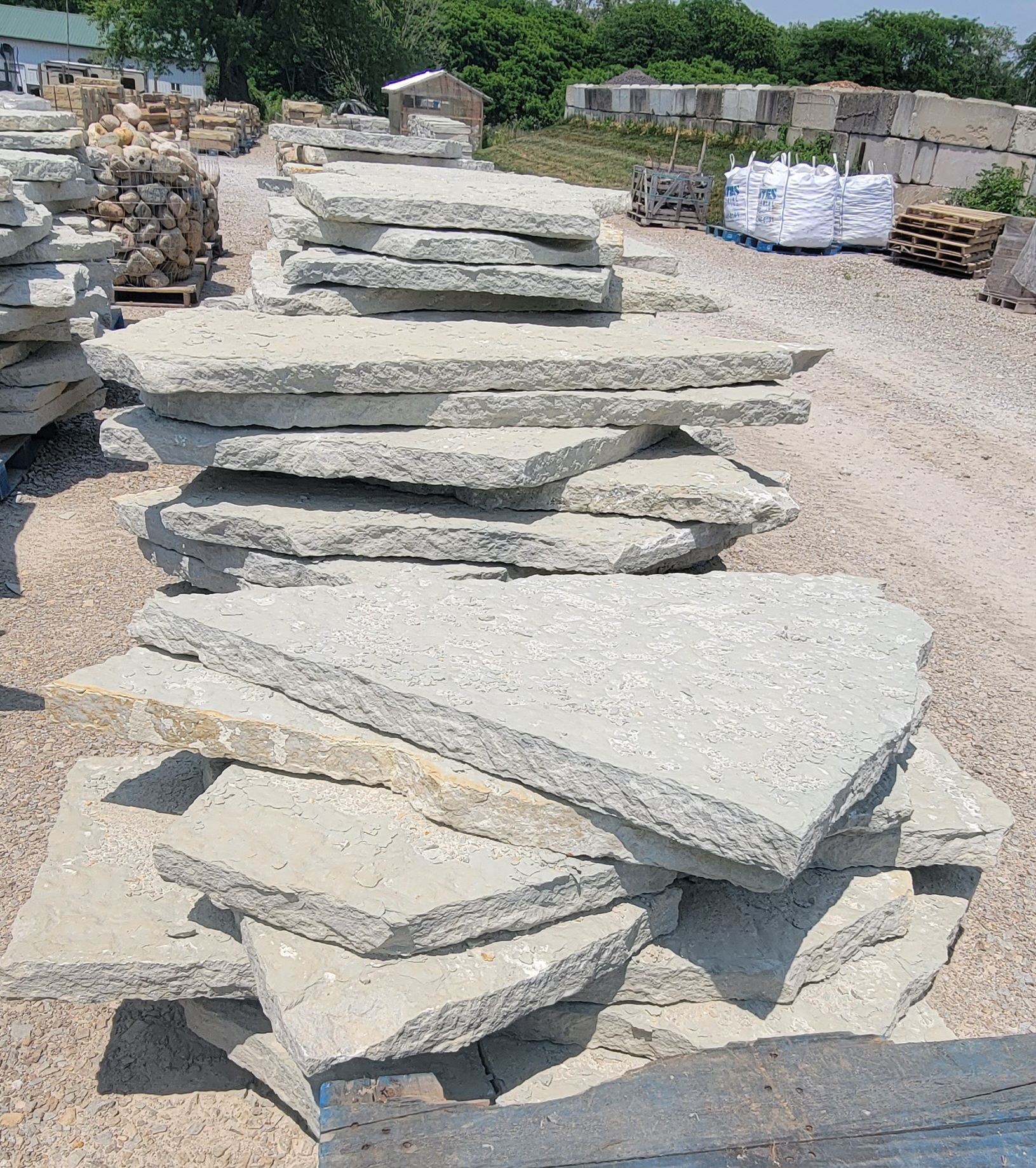 Flagstone is available on pallets and in stock year around. The material is sold by the ton, and is available in quantities down to 1lb. We accommodate jobs of all sizes.